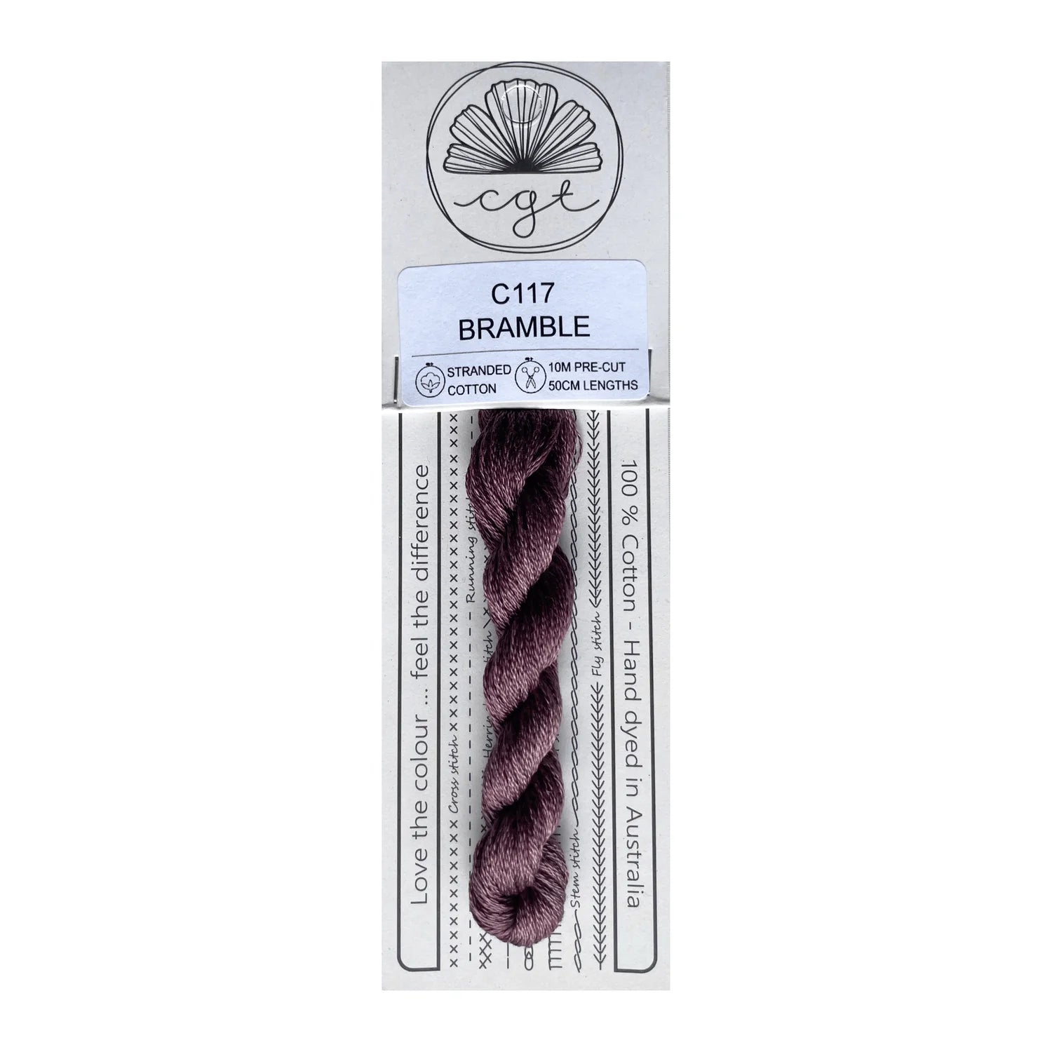 Carefully dyed so that the colour is the same at both ends of each 50cm pre-cut length, for a seamless blend. Made using the finest quality long staple mercerised base thread. CGT threads are high sheen and colour-fast with a low knotting rate.