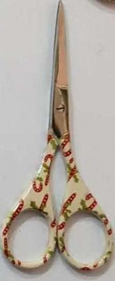 Cream scissors with red candy cane print. 3.5" embroidery scissors.