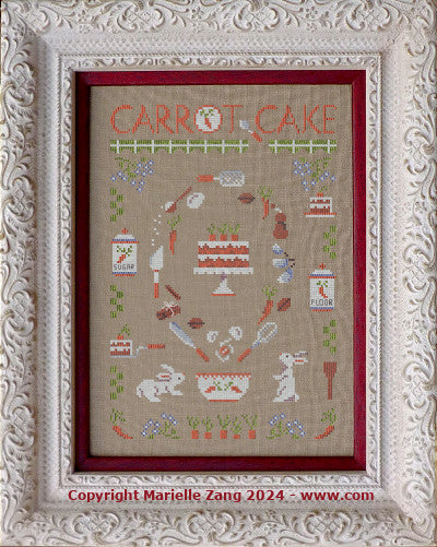 Designed by Marielle Zang Pujol. Lovely spring design featuring bunnies baking themselves a lovely carrot cake! Full DMC or Gentle Art conversion is provided.