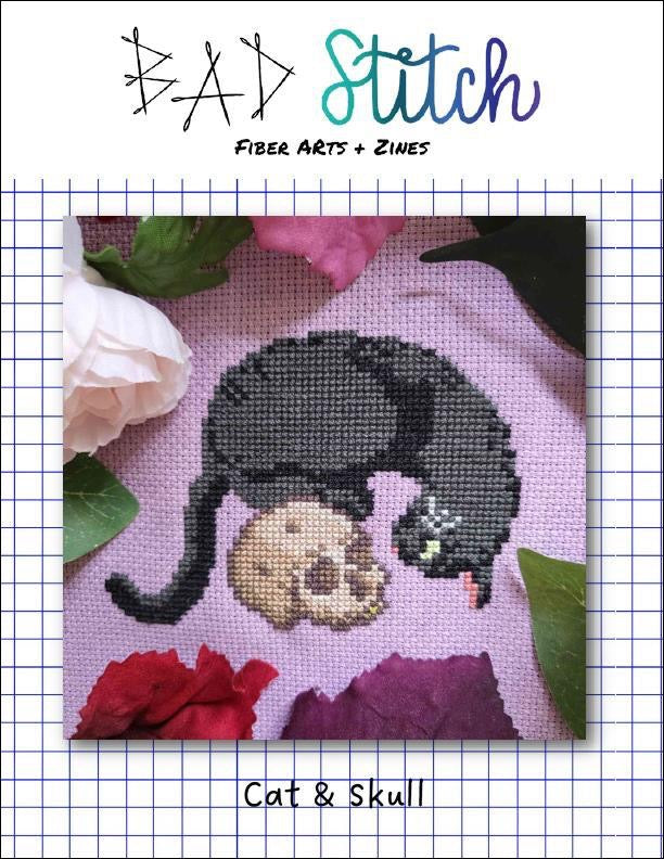 Everyone knows that black cats are the most mischievous! This cat is perched upon a skull, looking it in the eye.