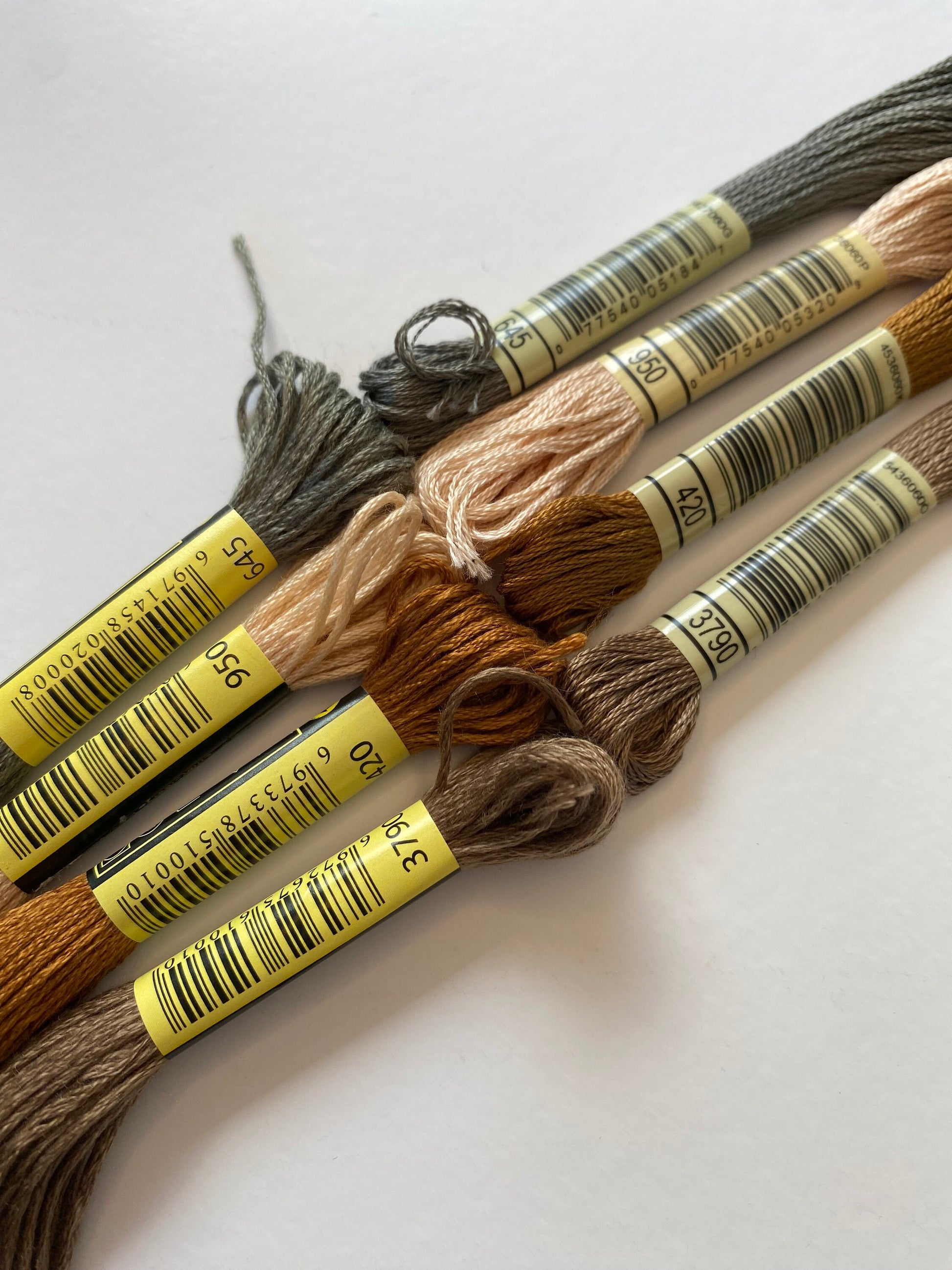 You will receive one of each thread: #150 - #3866, Blanc, Ecru, & B5200