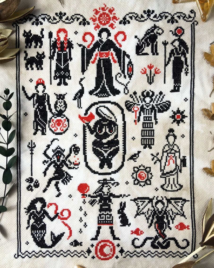 A gorgeous two-colour chart depicting 11 goddesses from across cultures.
