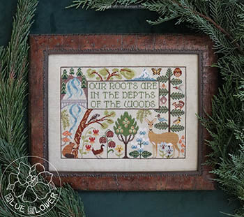 This design is a celebration of the woods, and was particularly inspired by the lovely Pacific Northwest rainforest. The designer has packed it with native plants and animals, and hopes it gives you the feeling of being immersed in the deep green forest. Original design by Jeannine McGowan.