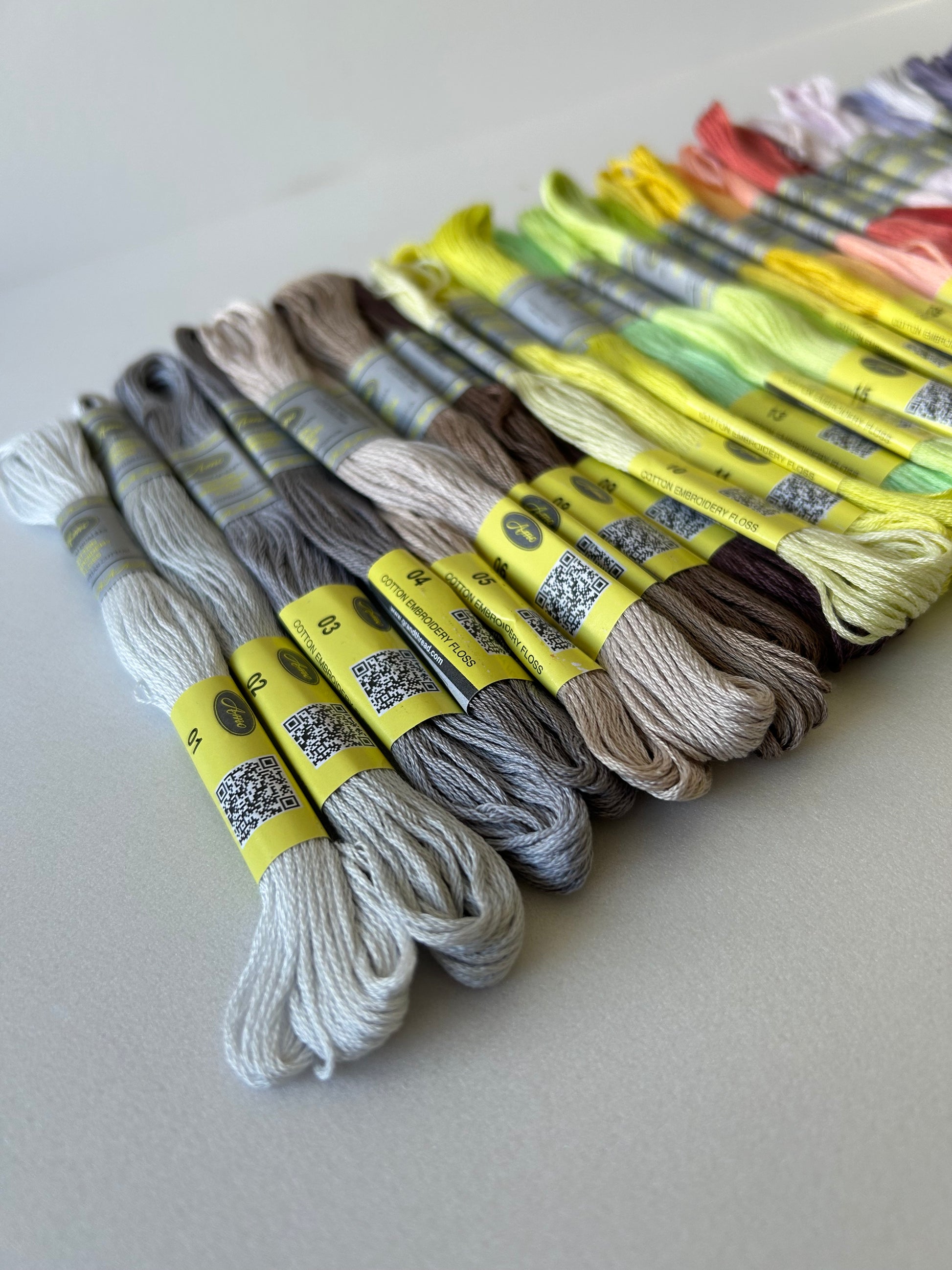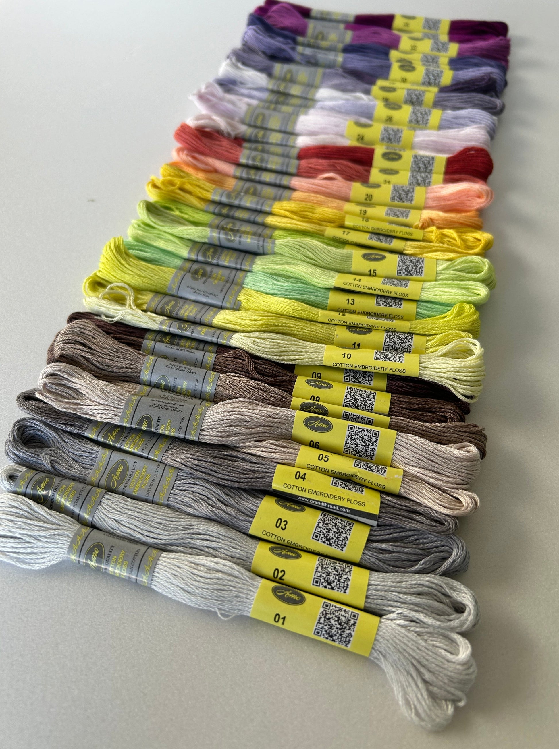 This listing is for the full set of AMO thread in the new DMC colours 1-35, working out at just 37p per skein.