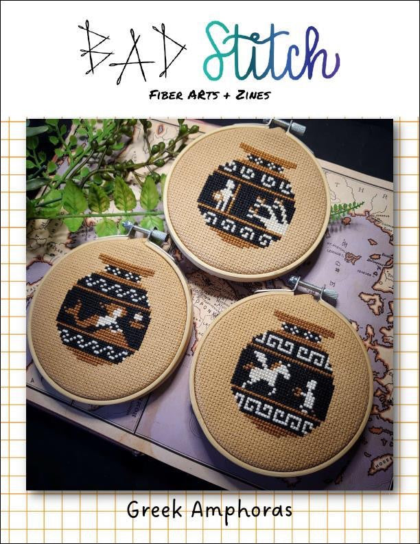 This is a three pattern bundle of Greek Amphoras, each depicting a different Greek Myth. There's Hercules fighting the Hydra of Lerna, Sirens luring in sailors with their songs, and Bellerophon capturing Pegasus with the Golden Bridle.