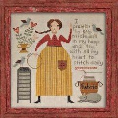 I promise to keep needlework in my hoop and try with all my heart to stitch daily. DMC conversions provided.